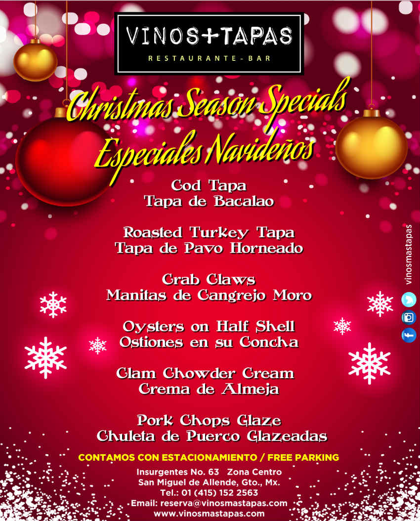 * All the month of December in addition to our regular menu we offer the following Christmas specials