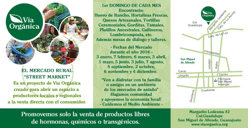 The first Sunday of each month, 9am-4pm Vía Orgánica, Margarito Ledesma, col. Guadalupe Free